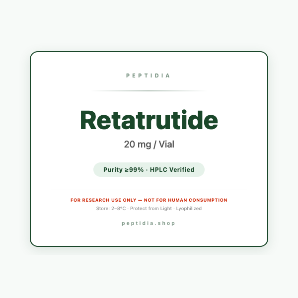 Retatrutide (LY3437943) ist ein synthetischer Triple-Agonist-Peptid, der GIP-, GLP-1- und Glucagon-Rezeptoren simultan adressiert. Entwickelt von Eli Lilly, derzeit in klinischer Erforschung.