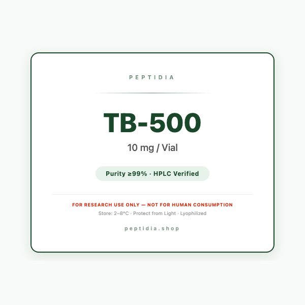 TB-500 ist eine synthetische Version des natürlich vorkommenden Peptids Thymosin Beta-4 (Tβ4), bestehend aus 43 Aminosäuren. Es wird in präklinischen Forschungsmodellen eingesetzt.